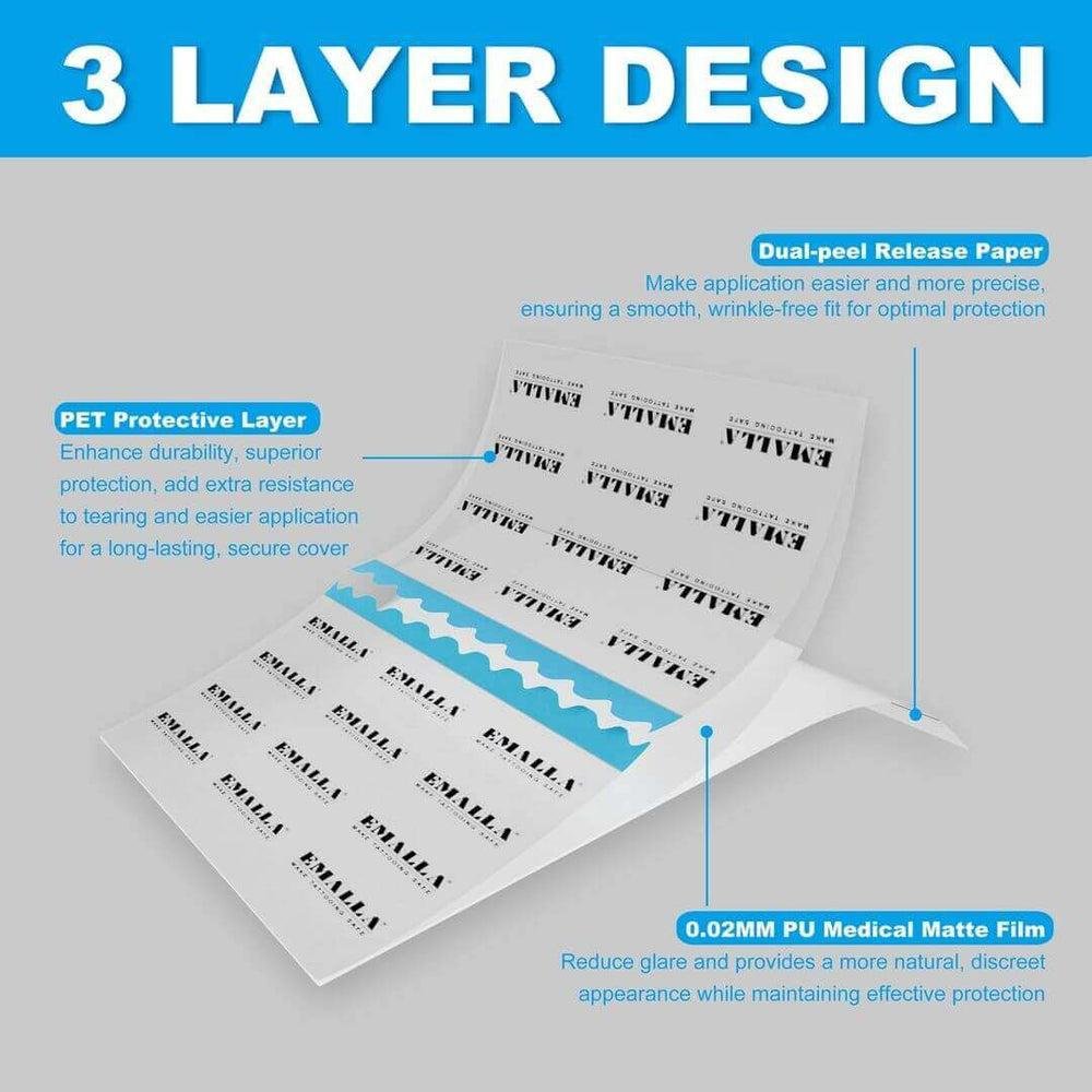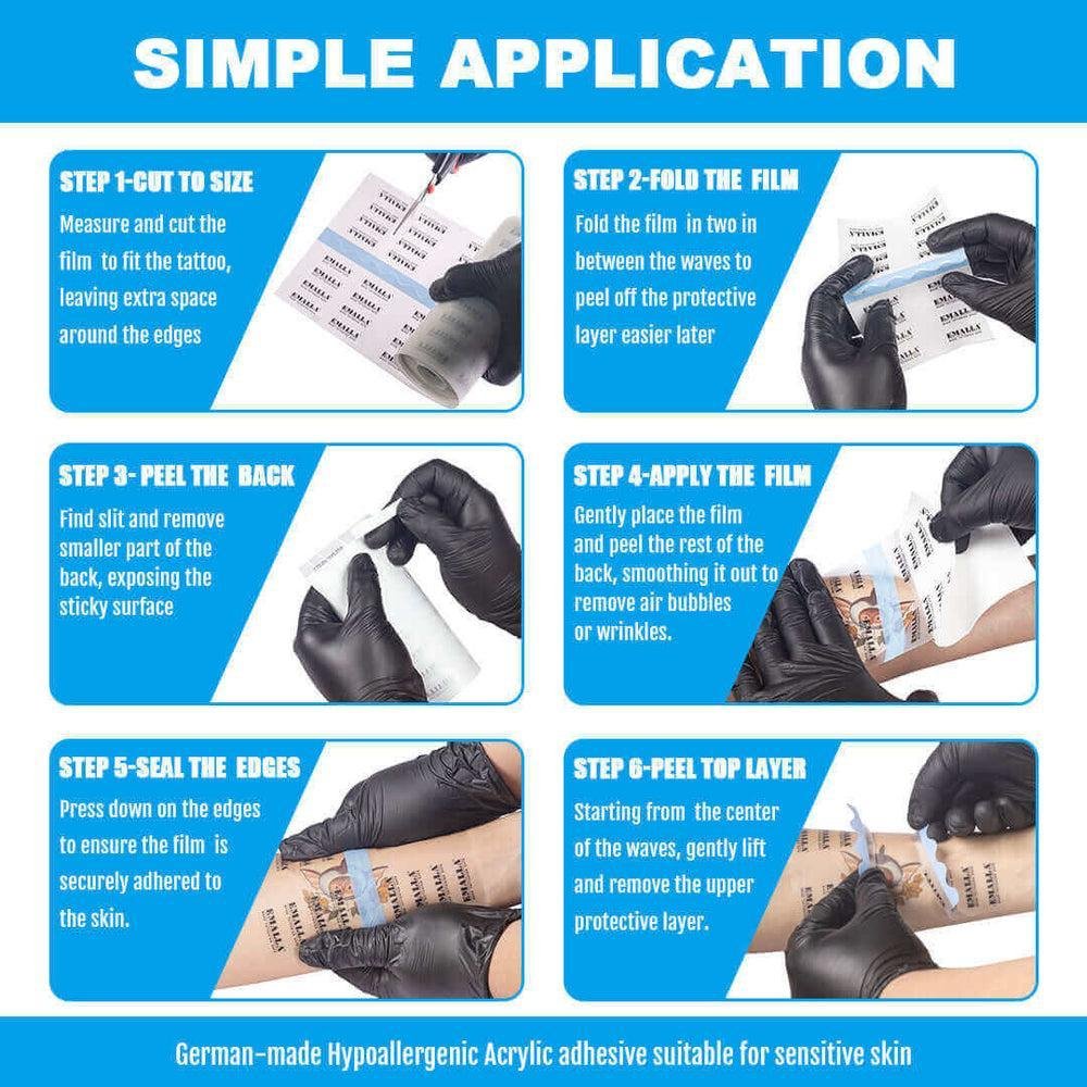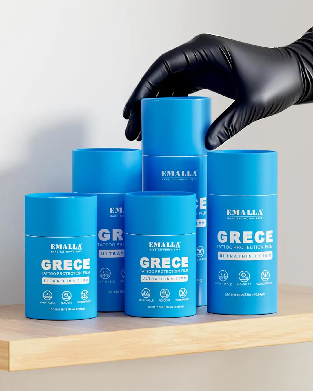 סרט ההגנה EMALLA Grece שומר על הקעקועים החדשים ומגן על העור בתהליך ההחלמה.