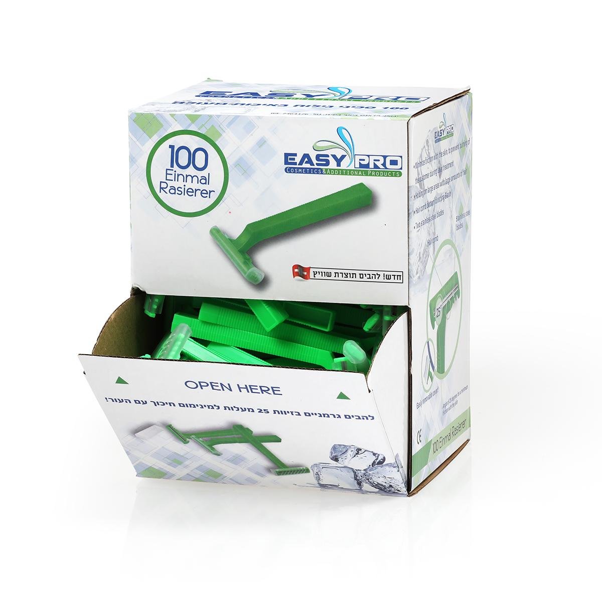 סכיני גילוח חד־פעמיים Easy Pro – קופסה של 100 יחידות