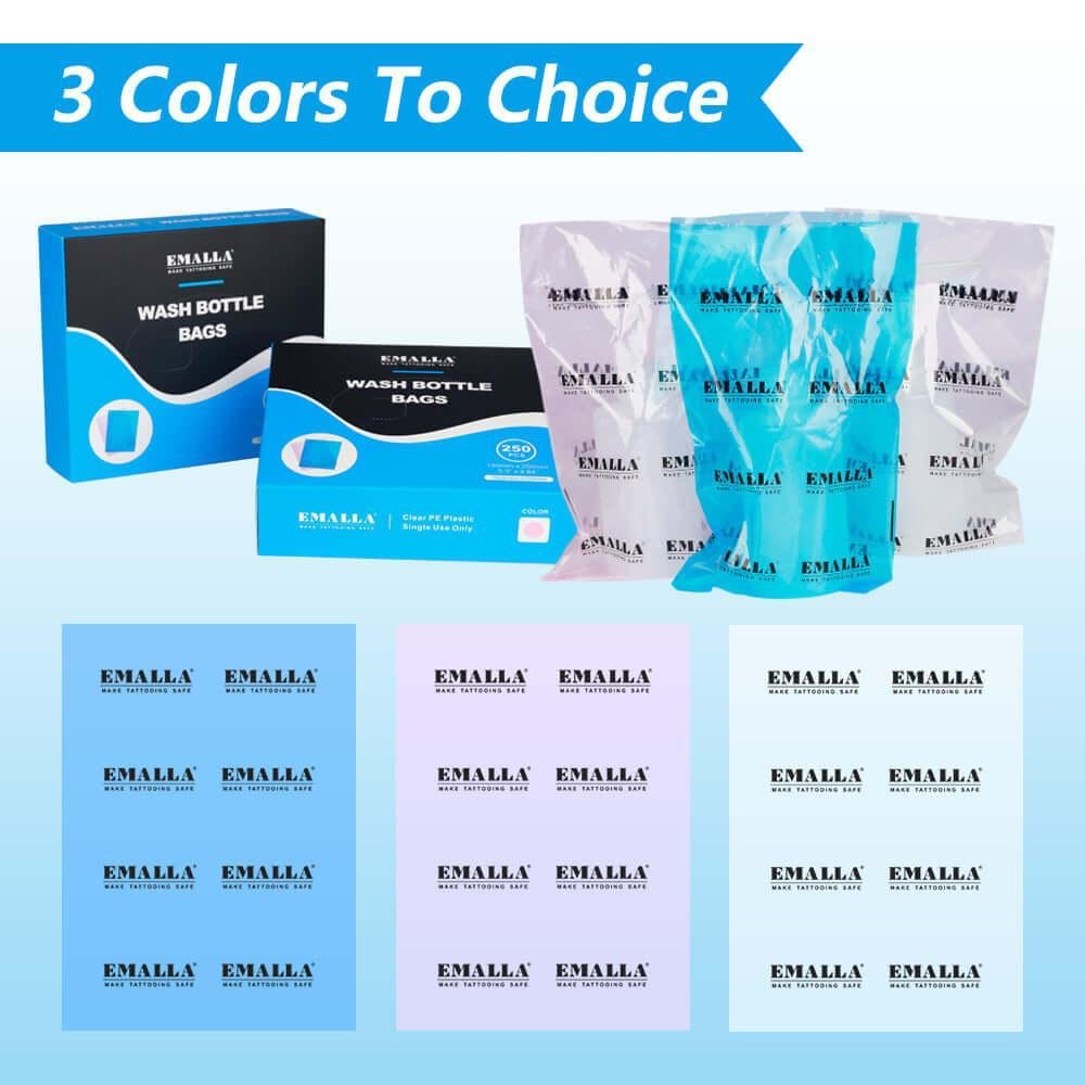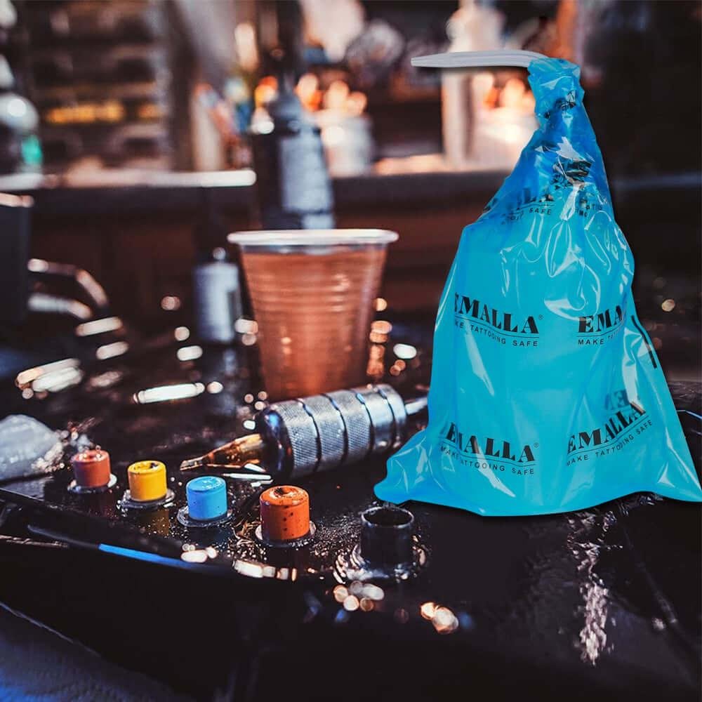 שקיות בקבוקי השטיפה של EMALLA עמידות בפני קרעים, מבודדות את פנים הבקבוק ומחוץ לו כדי להגן טוב יותר על כלי הקעקוע במצב עמיד למים ולכלוך